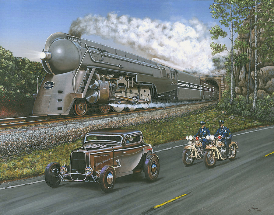 | A "Race Interupted" with the 20th Century Limited and a sure speeding ticket.